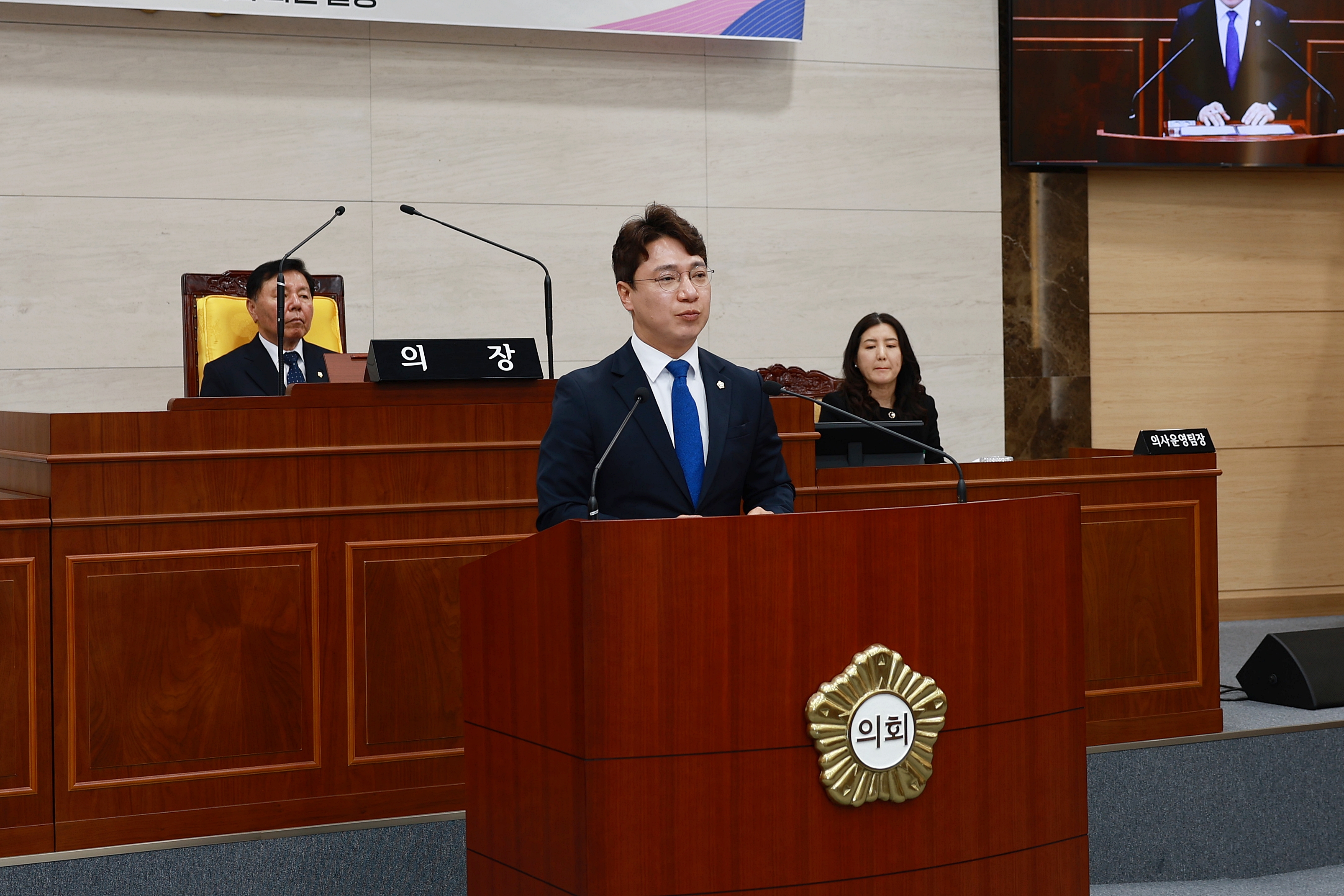 동력을 잃거나 행정의 공백으로 이어지지 않기를 바라는 것이 많은 군민의 마음입니다. 민선 8기에 정성껏 뿌린 씨앗들이 민선 9기에서도 흔들림 없이 뿌리 내리고 풍성한 열매를 맺을 수 있도록, 더욱 세심하고 책임감 있는 행정의 연속성을 보여주어야 합니다. 그것이 곧 행정에 대한 군민의 신뢰를 지키는 길이기 때문입니다. 전환기일수록 공직자 여러분의 역할이 더욱 빛을 발합니다. 현장의 목소리에 귀 기울이며 마지막까지 맡은 바 소임에 최선을 다해주시는 여러분의 모습에서, 군민들은 “나의 일상은 여전히 안전하고 평온하다”는 확신을 얻게 될 것입니다. 본 의원 또한 의회의 일원으로서 여러분이 자부심을 가지고 일하실 수 있도록 끝까지 응원하고 지원하겠습니다. 존경하는 구복규 군수님! 군수님께서는 지난 임기 동안 화순의 변화를 위해 누구보다 뜨거운 열정으로 현장을 누비셨습니다. 때로는 과감한 결단으로, 때로는 따뜻한 소통으로 화순의 지도를 새롭게 그려오신 군수님의 노고에 깊은 경의를 표합니다. 군수님께서 마지막까지 민선 8기의 수장으로서 화순의 안녕과 발전을 위해 헌신해주시리라 믿어 의심치 않습니다. 군수님께서 쌓아오신 풍부한 경험과 지혜는 앞으로도 우리 화순의 소중한 자산이 될 것입니다. 임기 이후에도 우리 지역의 큰 어른으로서, 갈등을 녹여내고 화합을 이끄는 든든한 버팀목이 되어주시길 진심으로 기대하고 소망합니다. 존경하는 군민 여러분, 그리고 공직자 여러분! 마무리는 단순한 끝이 아니라, 더 나은 내일을 위한 숭고한 준비 과정입니다. 우리 화순이 반목과 갈등을 넘어, 오직 군민의 행복만을 위해 전진하는 성숙한 공동체로 거듭나기를 간절히 바랍니다. 본 의원 또한 한 사람의 군민으로서 겸허한 자세로 민선 8기의 아름다운 마무리를 돕고 민선 9기가 희망차게 출발할 수 있도록 가교 역할에 최선을 다하겠습니다. 이상으로 5분 자유발언을 마치겠습니다. 끝까지 경청해주셔서 감사드립니다.